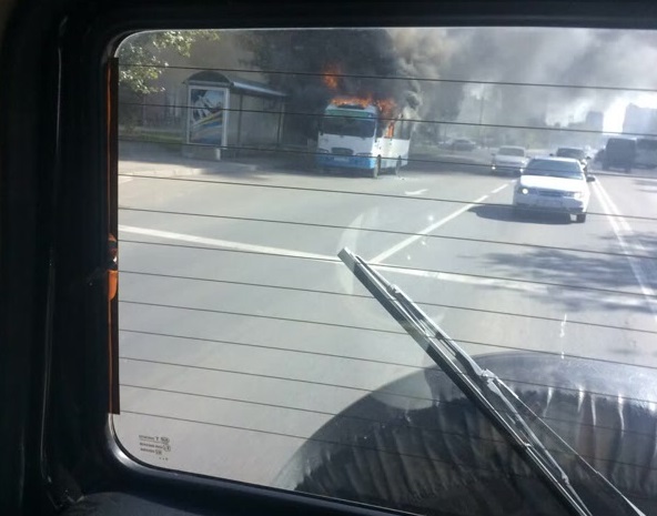 Пассажирский микроавтобус горел в Астане, сообщает сайт astinfo.kz