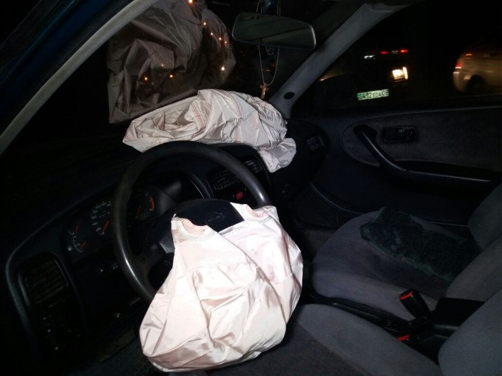 В результате чего пострадал водитель Daewoo Nexia. По приезду кареты скорой помощи ему оказали первую медпомощь, от госпитализации он отказался.