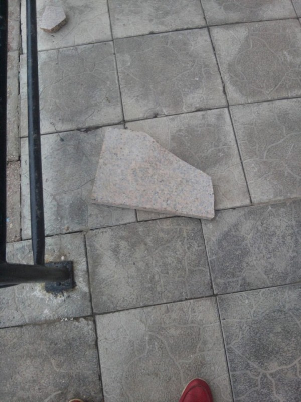 "Девочка 2010 года рождения, моя соседка, подошла к домофону позвонить, как вдруг на нее упала облицовочная плитка со второго этажа! Ребенок получил серьезные физическую и психологическую травмы. Вызвали скорую помощь, девочку отвезли во 2-ю городскую детскую больницу, где ей оказали помощь, наложили гипс! Девочка боится теперь заходить в подъезд, боится ветра. Хорошо, не на голову упала плитка. Кто за это в ответе? Кто должен отвечать за безопасность людей? (...)" - написала пользовательница Facebook.
