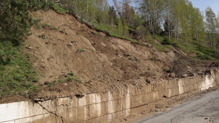 По дороге на высокогорный комплекс "Медеу" в Алматы произошел сход грязевой массы. Зафиксированы небольшие оползни на склонах. Фото с места происшествия публикуют пользователи Facebook и других социальных сетей.