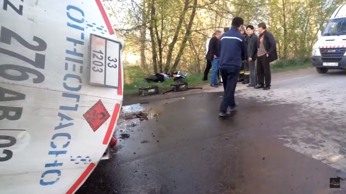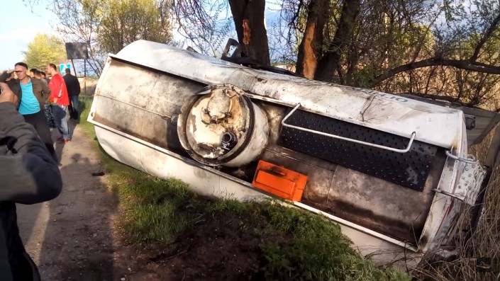 Очевидцы рассказали, что на пути у бензовоза столкнулись внедорожник Mitsubishi Pajero и легковушка LADA. Пытаясь избежать столкновения, водитель автоцистерны резко сманеврировал и завалил машину набок. При этом цистерна с топливом укатилась на обочину другого края дороги. Водителя вытащили из кабины живым и невредимым.