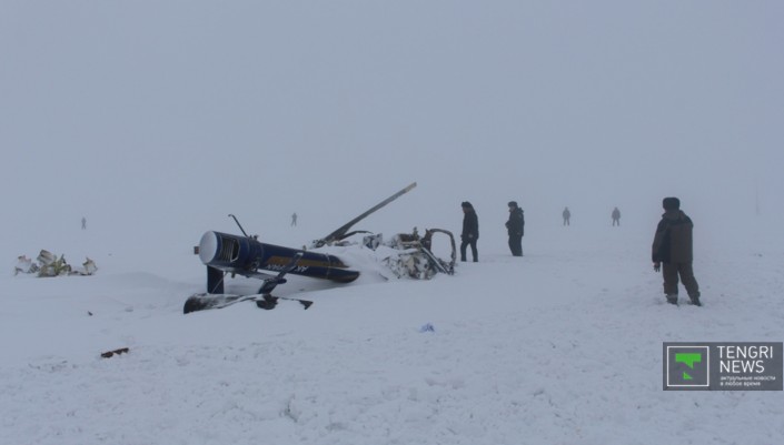 Появились фото с места крушения вертолета авиакомпании "Аспан", перевозившего пять человек на борту, передает корреспондент Tengrinews.kz.