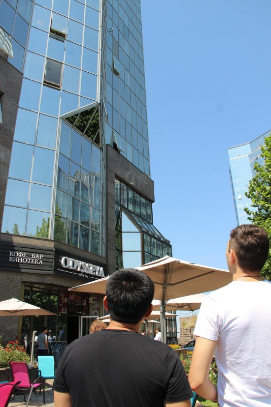 Ранее одна из пострадавших девушек рассказала, что стекло упало с четвертого этажа бизнес-центра "Нурлы Тау", когда мужчина открывал окно. Стекло упало на столбик, который находился прямо возле столика, где обедали девушки. "Первой удар приняла девушка, которая и пострадала больше всех. Осколки вонзились ей в шею, голову, спину, на нас потом уже. Еще чуть-чуть и стекло просто убило бы ее, прорезало бы насквозь. Потому что оно летело целиком и с высоты по диагонали", - рассказала собеседница.
