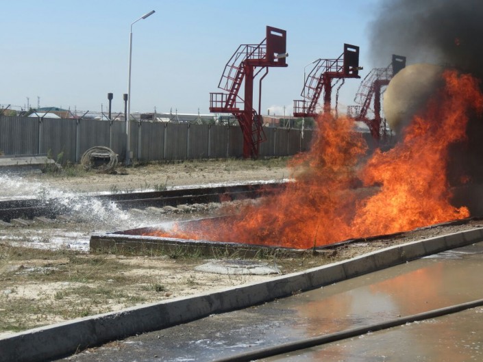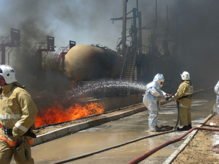 Возгорание произошло примерно в 10.50 в районе поселка Карабулак Сайрамского района ЮКО. Силами пожарных подразделений пожар на нефтебазе в ЮКО полностью ликвидирован в 17.07.