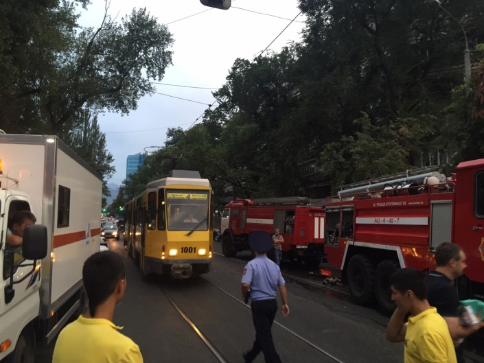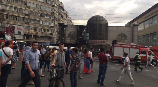 По предварительным данным, возгорание началось из-за замыкания в электросети. Как сообщили очевидцы произошедшего, пожар начался в турецком кафе, находящемся рядом с ТЦ, а потом огонь перекинулся на "Пассаж". По данным ДЧС Алматы, на место прибыли 13 единиц основной и одна единица специальной техники. Огонь был локализован в 19.29, а ликвидирован в 19.42. Площадь возгорания составила 80 квадратных метров.