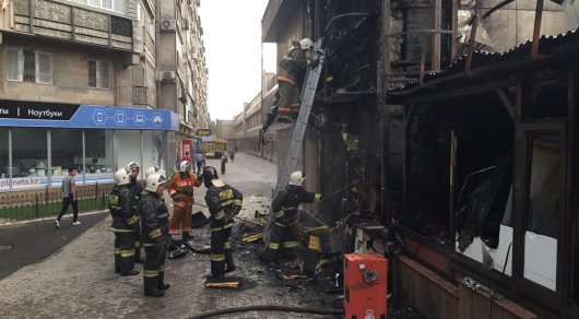 Пожар произошел в торговом центре "Пассаж" в Алматы, который находится на пересечении улиц Кунаева и Жибек жолы, передает корреспондент Tengrinews.kz с места события. В результате сильно пострадал фасад здания с левой стороны и находящее рядом турецкое кафе. Жертв и пострадавших нет.