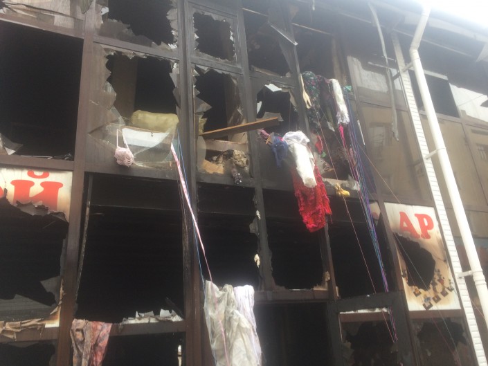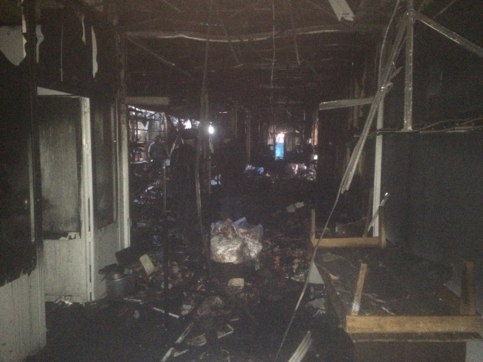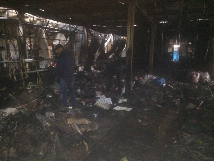 По данным ДЧС Жамбылской области, увеличению площади пожара и распространению огня способствовала высокая пожарная нагрузка и конструкции бутиков, исполненных из легковоспламеняющихся строительных материалов.