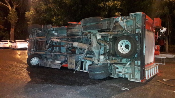 В Алматы в результате ДТП перевернулась пожарная машина, передает корреспондент программы "Территория происшествий" на канале СТВ.