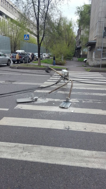 На проезжую часть в центре Алматы упали деревья и электрический столб Фото прислано читателем Tengrinews.kz