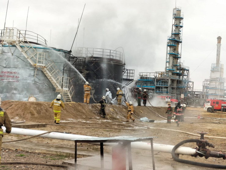"В селе Аса Жамбылского района Жамбылской области произошел пожар на территории таразского филиала ТОО "Амангельдинский ГПЗ" (газоперерабатывающего завода). Горели два резервуара с дизельным топливом общим объемом 480 кубометров. Сообщение в дежурную службу ДЧС поступило в 12 часов 4 минуты", - говорится в сообщении.