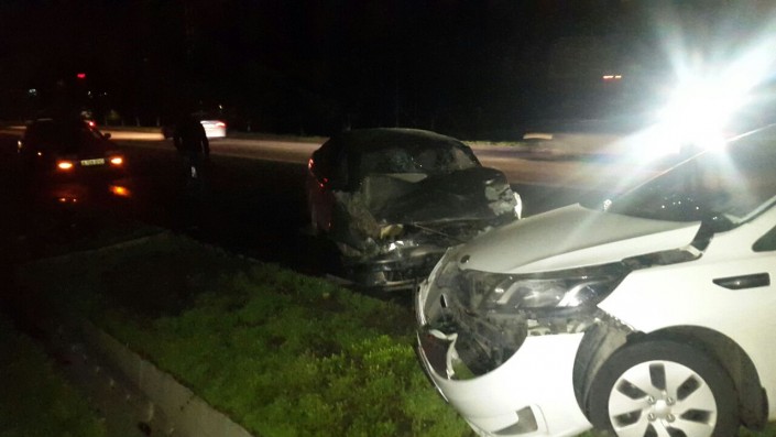 Первый инцидент произошел на пересечении улиц Розыбакиева - Богенбай батыра. Со слов очевидцев, автомобиль марки Toyota Carina E следовал по улице Розыбакиева на юг. Тем временем, авто марки KIA Rio направлялось по той же улице на север, машину занесло и развернуло боком.