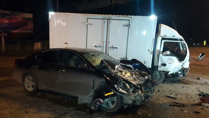 Второе ДТП произошло на пересечении улиц Суюнбая - Баянаульская. По улице Суюнбая на север следовала машина марки Lexus, на юг направлялось грузовое авто Isuzu, которое собиралось повернуть налево на улицу Баянаульская. Со слов очевидцев, она не пропустила авто, в результате чего Lexus ударил угол Isuzu.