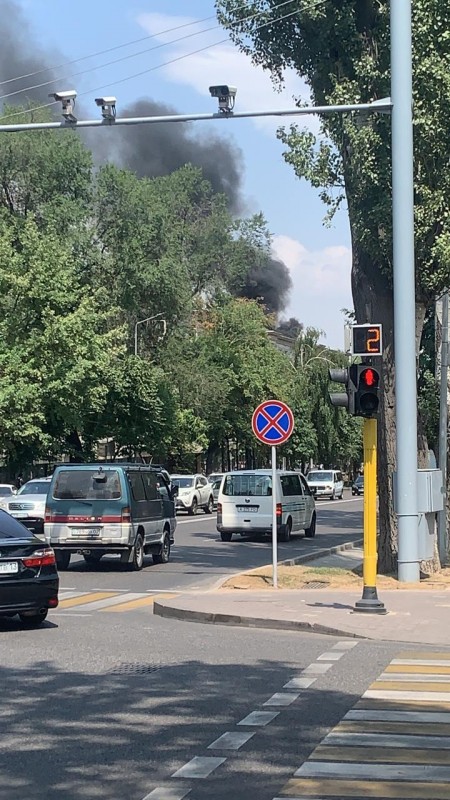 По словам очевидцев, проспект Назарбаева и близлежащие улицы затянуло дымом, сильно пахнет гарью.