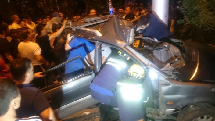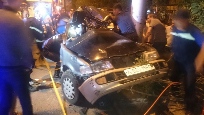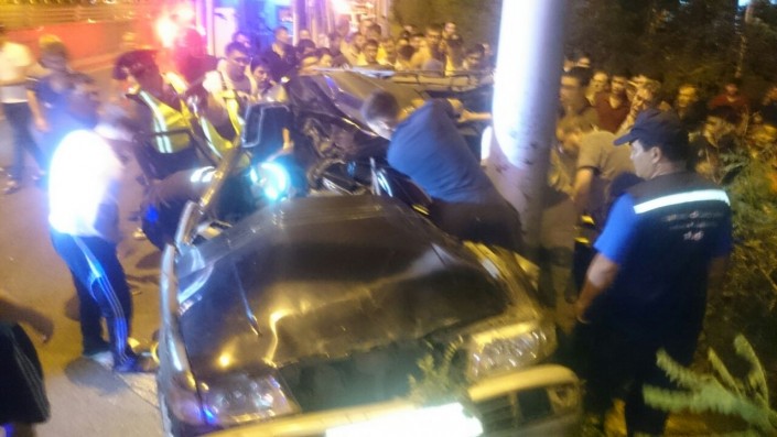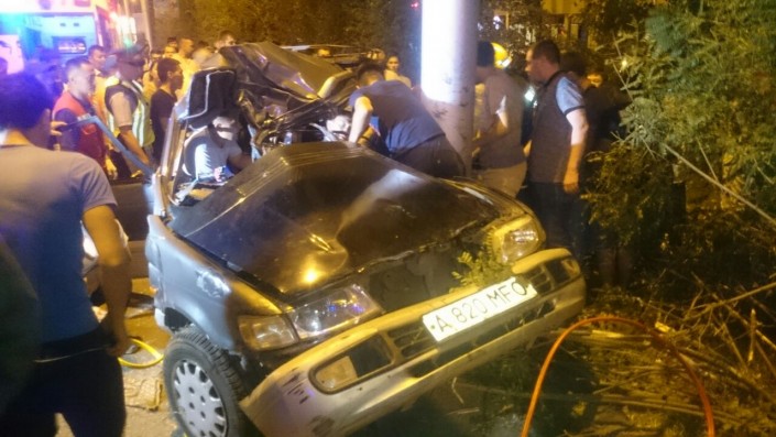 Все участники аварии ехали по Саина в северном направлении. По словам очевидцев, в какой-то момент водитель неизвестной иномарки подрезал автомобиль Subaru. В результате Subaru столкнулась с Mitsubishi Chariot, который затем врезался в столб. Subaru же откинуло в арык. Причем во время полета она задела еще одну легковую машину - Skoda Octavia.
