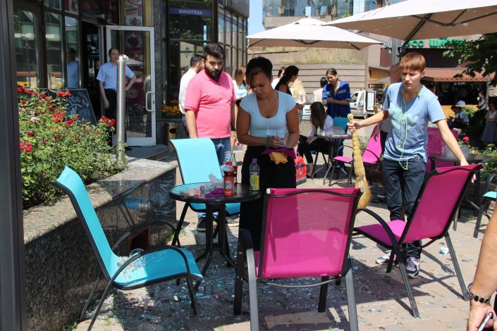 "Упало стекло, произошел инцидент. Девушка написала заявление, полиция сейчас будет разбираться. Мы к этому никакого отношения не имеем, мы арендаторы. Там, где произошло ЧП, - это территория общего доступа. Столы стоят просто и зонты для людей в общем доступе, мы за это не берем ни денег, ничего. Туда подходят люди, садятся. Мы просто за свой счет облагородили эту территорию, чтобы люди не стояли на жаре. Само кафе находится в здании, на первом этаже. Мы первую помощь оказали ей, лед вынесли, салфетки, пока не приехала "скорая", - рассказал директор кафе-бара "Odysseya" Алексей.