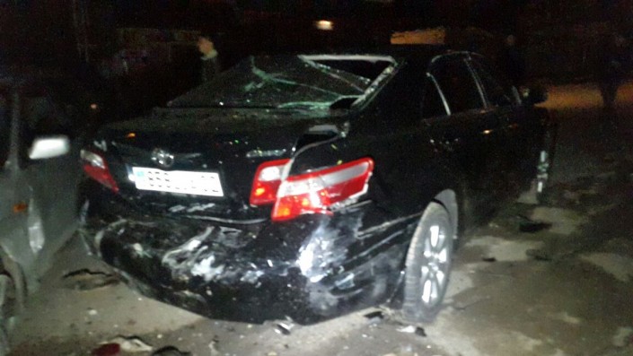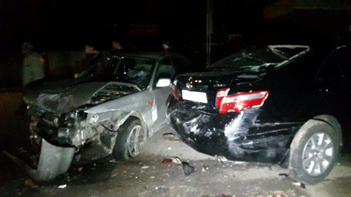 ДТП произошло ночью по улице Яссауи. По словам очевидцев, Subaru на большой скорости протаранил припаркованные Chevrolet и Toyota Camry.