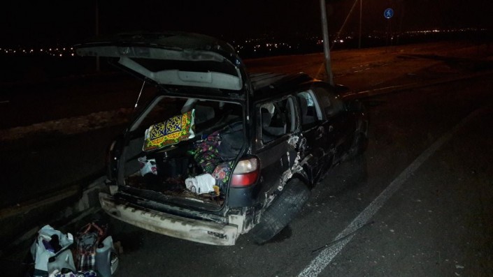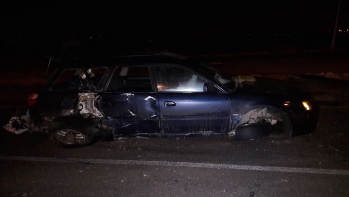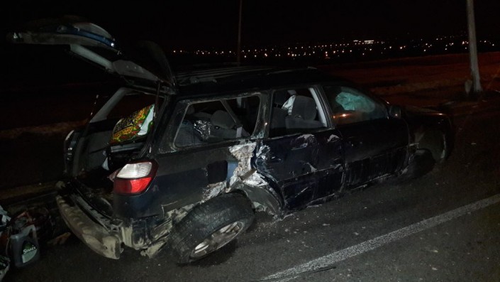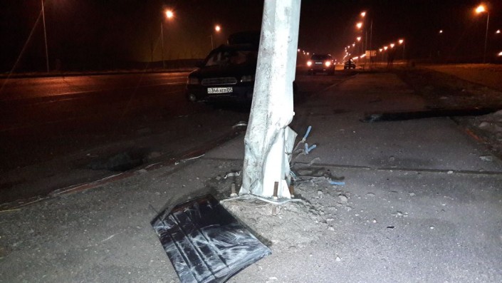 Subaru снес дорожный знак и врезался в столб в Алматы Фото "Территория происшествий"©