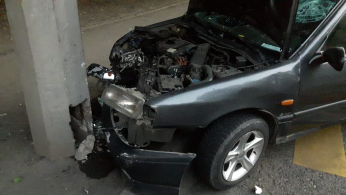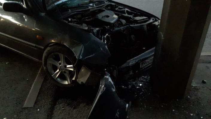 По словам водителя Nissan, он ехал в южном направлении и подобрал девушку, которая ловила такси. Пассажирка села на переднее сиденье. Водитель рассказывает, что она якобы была выпившей и в какой-то момент схватилась за руль и дернула вправо. Машина на полном ходу врезалась в бетонный столб уличного освещения.