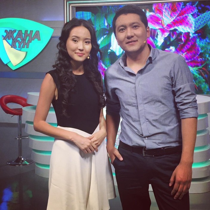 Асхат Садырбай со своей коллегой на программе "Жаңа Күн" на телеканале "Хабар". © Instagram