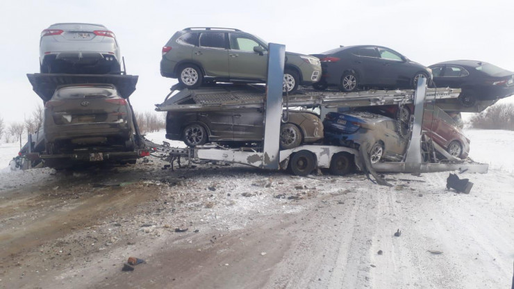 Авария с участием трех автовозов и одного грузового авто произошла в Актюбинской области, передает Tengrinews.kz.