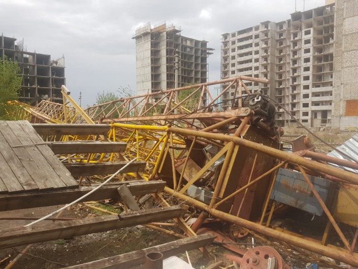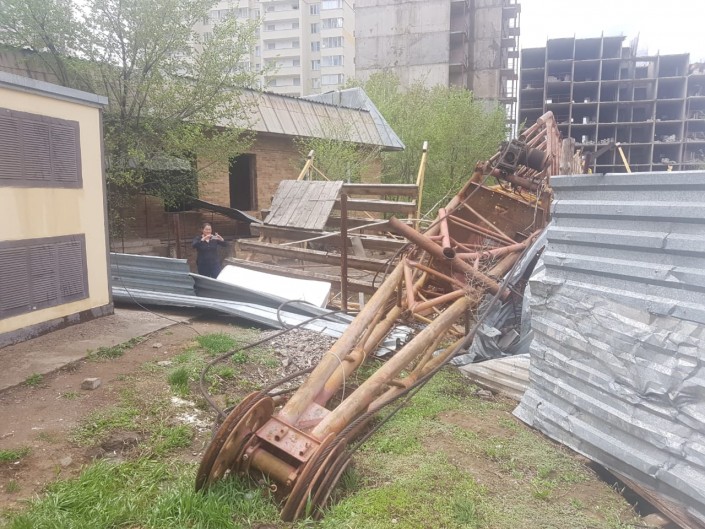 В Астане рухнул строительный кран из-за урагана, передает Tengrinews.kz. Видео падения крана прислали читатели.