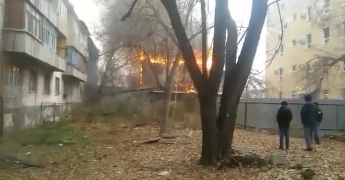 Видео происшествия в редакцию прислал очевидец. На ролике видно, что строение охвачено огнем, валит густой черный дым. Здание по сторонам окружено жилыми домами. Причины случившегося пока неизвестны. По словам очевидца, посетители и работники кафе эвакуированы.