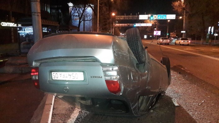 В Алматы из-за открытого люка перевернулся автомобиль