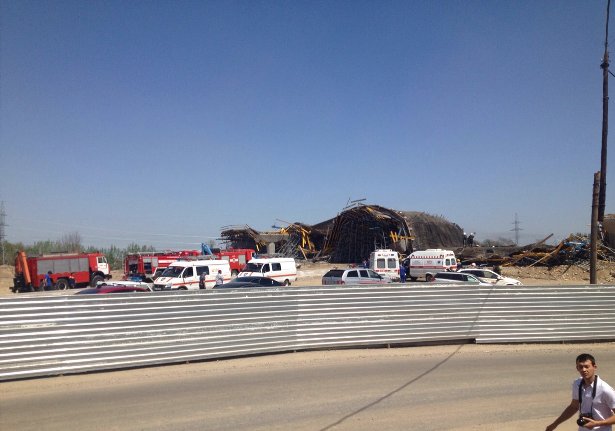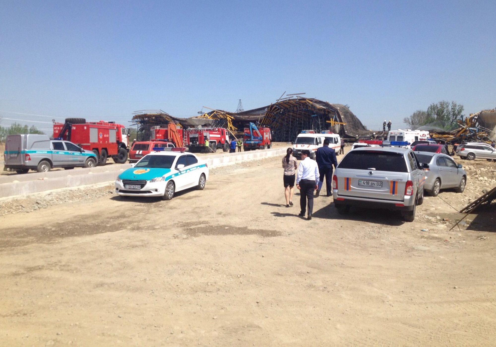 По словам местных жителей, обрушение строящегося моста произошло около 12.30. Они услышали треск и грохот, после чего выбежали на улицу. Как сообщил корреспондент Tengrinews.kz, на месте находятся 10 пожарных расчетов, полиция и бойцы СОБРа. Строящаяся развязка должна была связывать проспект Рыскулова и Восточную объездную дорогу.