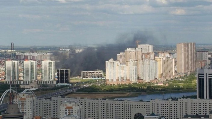 В Астане горит кровля трехэтажной хозпостройки, площадь пожара составляет 250 квадратных метров, передает корреспондент Tengrinews.kz.