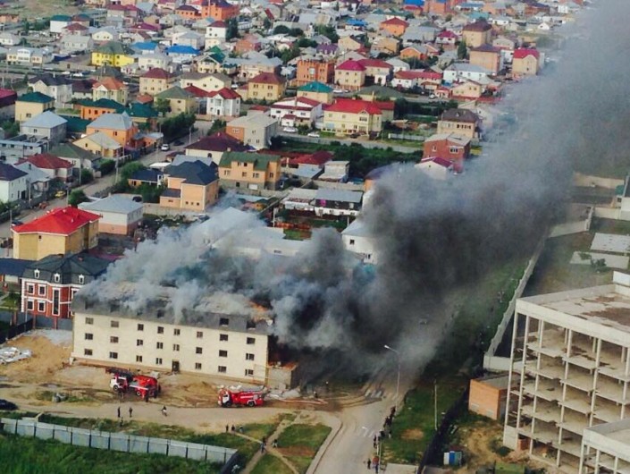 "В 18:23 поступило сообщение о том, что горит кровля новостроящейся хозпостройки по улице Акыртас. На место пожара прибыла пожарная часть №10, работают четыре единицы техники, 24 человека личного состава. В данный момент ведутся работы по тушению пожара. Площадь горения пожара - 250 квадратных метров", - сообщили в пресс-службе ДЧС Астаны.