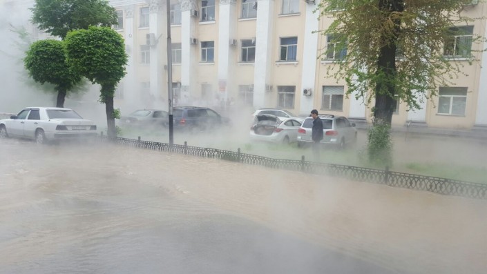 По словам очевидца, прорыв на перекрестке Айтеке би - Абылай хана произошел примерно в 12.15. Вода стремительно топит перекресток, из-за пара в этом районе образовался туман. Стоит добавить, что на этом месте расположен паркинг. Автовладельцы спешно отгоняют свои машины.