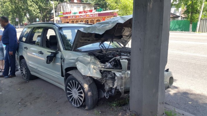 Авария произошла на проспекте Сейфуллина в районе улицы Иркутская. По информации корреспондента, автомобиль Subaru двигался по проспекту в южном направлении. У него на ходу лопнуло колесо, из-за этого авто "понесло" и он врезался в припаркованный Mitsubishi Galant. От удара Galant врезался в здание магазина. Пострадала пожилая женщина, которая находилась внутри автомобиля Subaru. Ее госпитализировали.