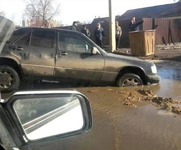 В выходные в такие подводные ямы попали сразу несколько машин.