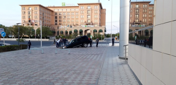 "Под брусчаткой находится люк. Там случился прорыв, земля просела, образовалась дыра. Водитель не заметил ее и при развороте попал колесом, под тяжестью машины яма увеличилась. Водитель является сотрудником компании "Мангистаумунайгаз", - сообщили в пресс-службе.