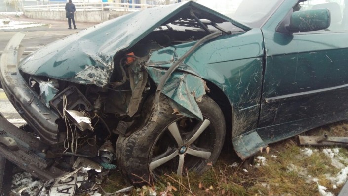 В Алматы после выпавшего первого снега произошло крупное ДТП. Водитель BMW не вписался в поворот и снес ограждение, передает корреспондент программы "Территория происшествий" на телеканале СТВ.