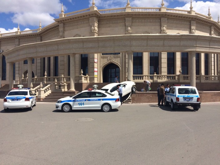 По данным СМИ, инцидент произошел в обеденный перерыв. Как сообщили в пресс-службе областного ДВД, личность водителя BMW белого цвета установлена. Как уточняется, на вопросы сотрудников полиции водитель иномарки заявил, что якобы он пытался увернуться от встречной машины и резко вывернул руль, из-за чего взлетел по лестнице Дворца и врезался в колонну.