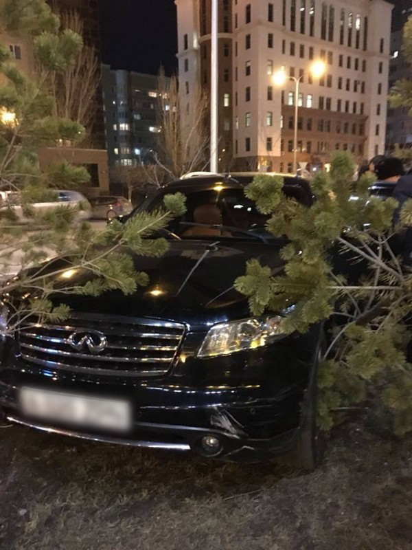 По информации очевидцев, инцидент произошел вечером 12 ноября возле ТРЦ "Керуен". "Прямо возле моего дома внедорожник заехал на газон, смяв молодые деревца. Очевидцы говорят, что водитель Infiniti FX35, двигаясь на парковке "Керуена" со стороны "Северного Сияния", сначала задел две машины, причем одной снес бампер, потом выехал на тротуар и там уже сбил трех девушек. "Скорая" забрала двоих, говорят, в тяжелом состоянии. Кровь видна до сих пор", - написал очевидец ДТП Марат Раимханов в Facebook