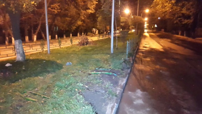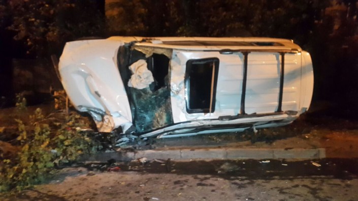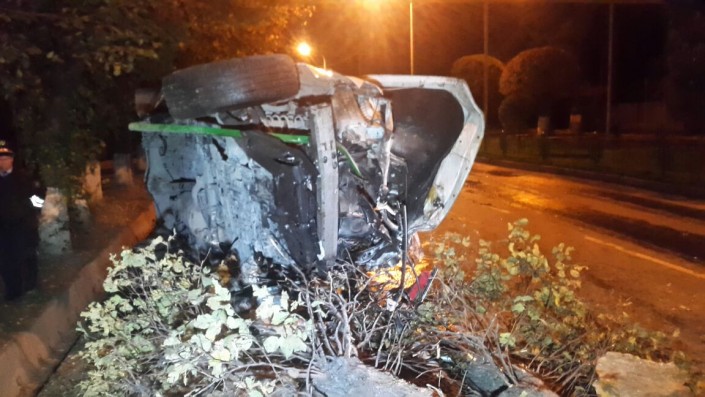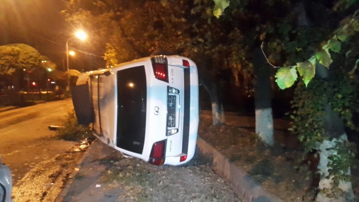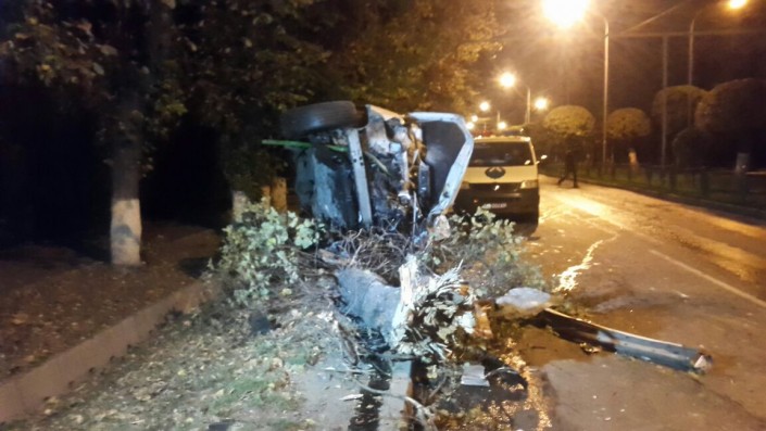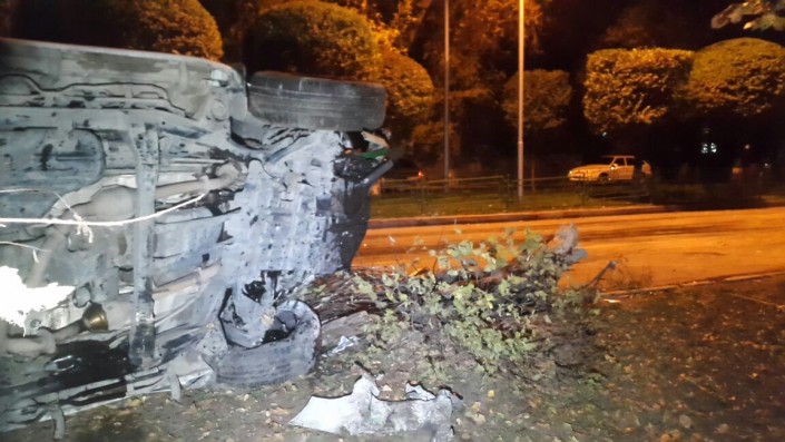 По словам очевидцев, водитель авто не справился с управлением. В результате Lexus перелетел через разделительный газон, сбил два дерева и перевернулся на бок.