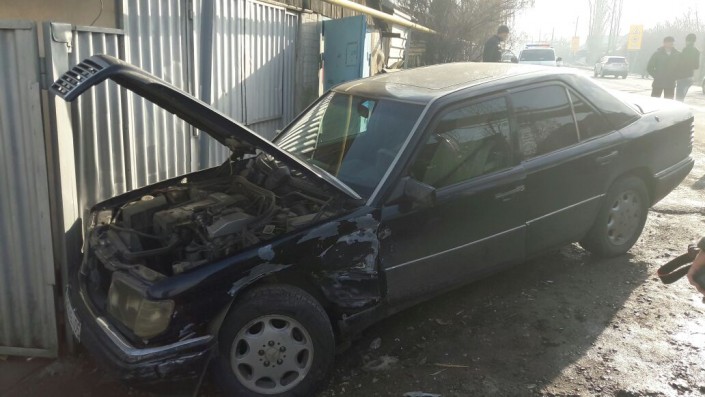 ДТП произошло по улице Яссауи, близ улицы Московская. Toyota Camry двигалась на север по Яссауи. По неизвестным причинам водитель не справился с управлением и на полном ходу врезался в припаркованный автомобиль Mercedes. От удара немецкую иномарку откинуло в забор частного дома. Toyota по инерции повредила несколько бордюров и вылетела в арык.
