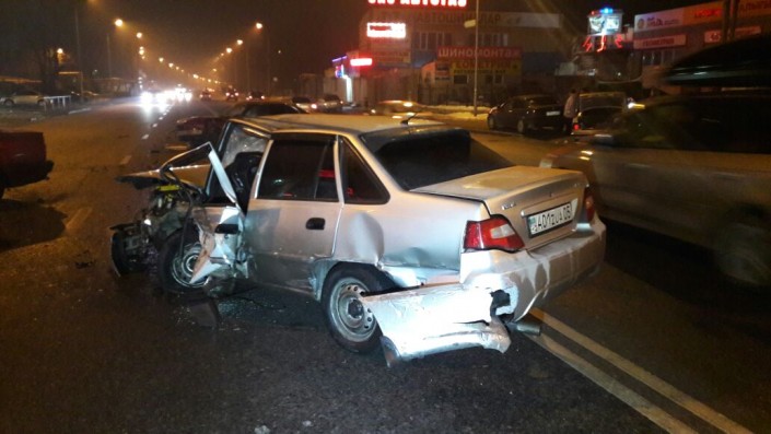 ДТП произошло по проспекту Райымбека. Со слов очевидцев, серебристая Daewoo Nexia и Daewoo Matiz двигались по проспекту в западном направлении. Не доезжая до улицы Бокейханова, водитель Nexia решил обогнать Matiz и выехал на полосу встречного движения. Они ударились. Nexia вылетела на полосу встречного движения, где столкнулась с двумя BMW. После этого в одну из пострадавших BMW въехала белая Daewoo Nexia, водитель которой не успел среагировать на происходящее.