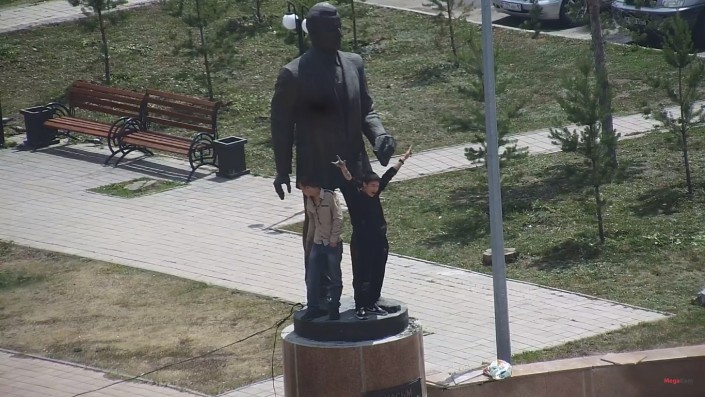 Двое молодых людей взобрались на памятник казахскому поэту Касыму Аманжолову, установленный у входа в центральный парк в Караганде. Нетрезвые парни позировали, кривлялись на камеру - хулиганов фотографировала приятельница. Инцидент попал в поле зрения камер уличного наблюдения. В итоге приехавшие полицейские задержали и оштрафовали нарушителей правопорядка, сообщает "Новый Вестник".