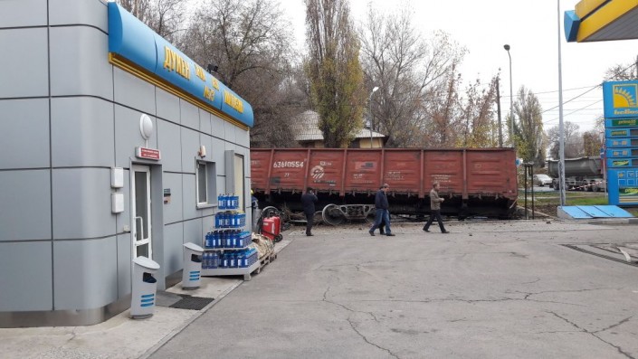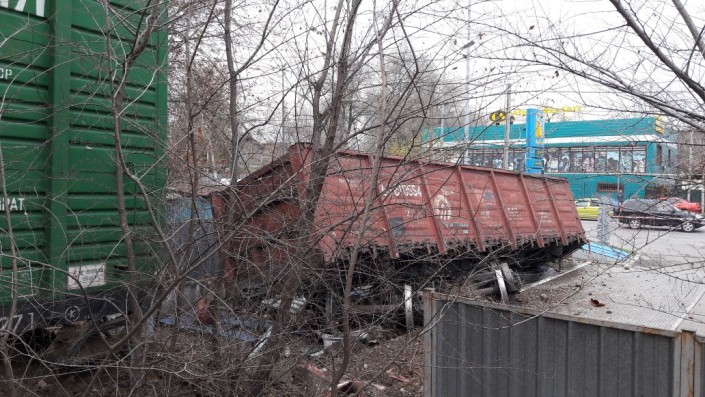 Железнодорожный вагон упал на территорию заправки Helios, расположенной в районе улицы Бокейханова, ниже проспекта Райымбека, в Алматы. Об этом сообщили очевидцы, передает корреспондент Tengrinews.kz.