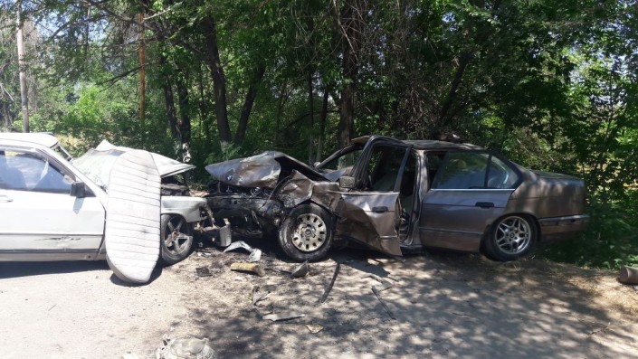 Жесткое лобовое столкновение двух авто произошло близ Алматы, есть пострадавшие