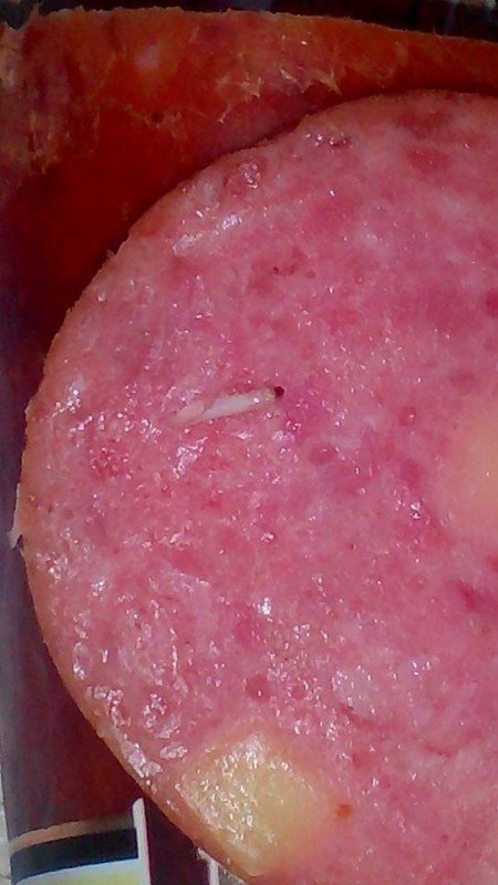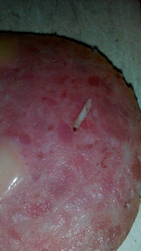Жительница Алматы обнаружила червяка в купленной колбасе Фото Анны Данилиной из аккаунта Facebook.com