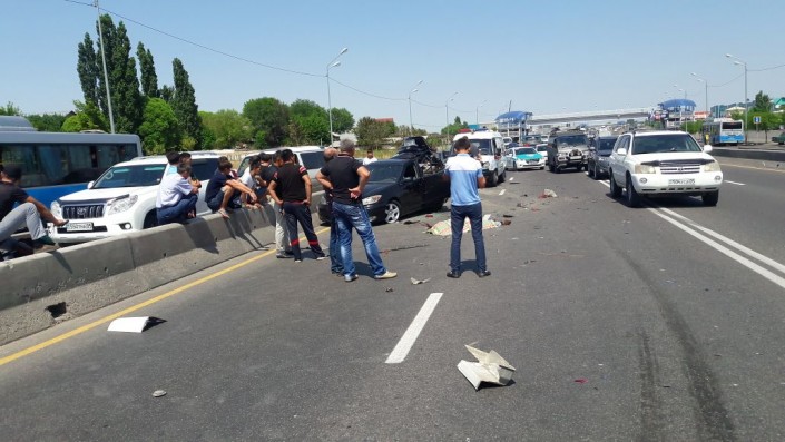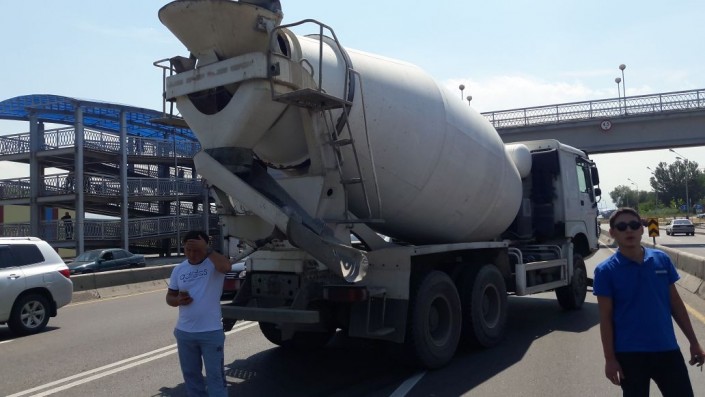 Жуткое ДТП на барахолке Алматы: бетономешалка врезалась в стоявшую на дороге легковушку