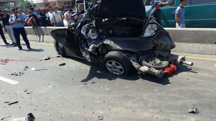 Жуткое ДТП на барахолке Алматы: бетономешалка врезалась в стоявшую на дороге легковушку Фото ©"Территория происшествий"