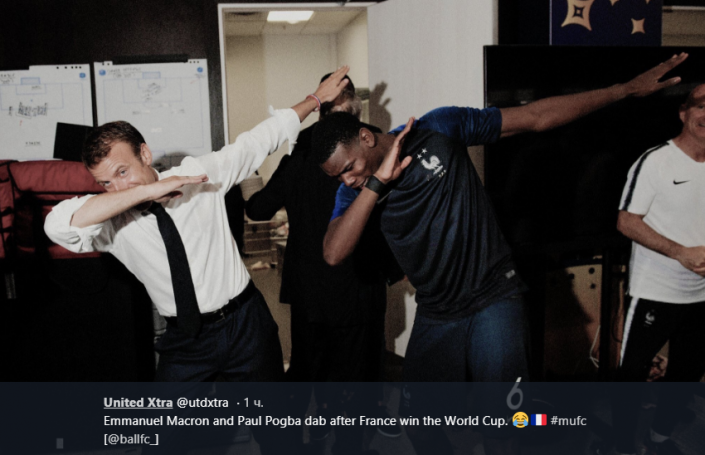 Президент Франции Эмманюэль Макрон c футболистом сборной страны Полем Погба.