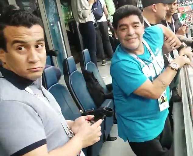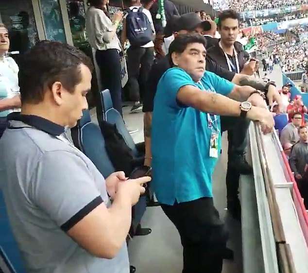 Марадона наблюдал за матчем из VIP-ложи, и во время телетрансляции камеры неоднократно показывали его бурные эмоции и реакцию на происходящее. Футболист вел себя вызывающе и порой неадекватно. Перед игрой Марадона станцевал с болельщицей сборной Нигерии. А после второго гола аргентинцев показал неприличный жест.