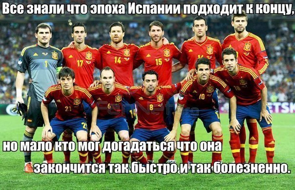Юмор, выраженный во фразах и картинках, касался и определенных игроков сборной, и самого факта вылета сборной Испании с ЧМ-2014. Первой волной для отчаянных фанатов, любящих пошутить, стал матч против сборной Нидерландов, когда Испания пропустила от них пять голов в свои ворота.