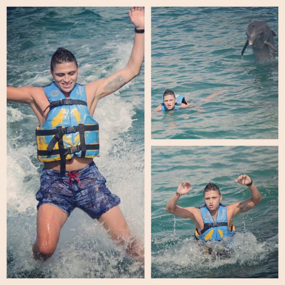 Колумбиец Рохер Каньяс из "Астаны" отдыхает на мексиканском курорте Канкун, где есть не только солнце, но и дельфины.